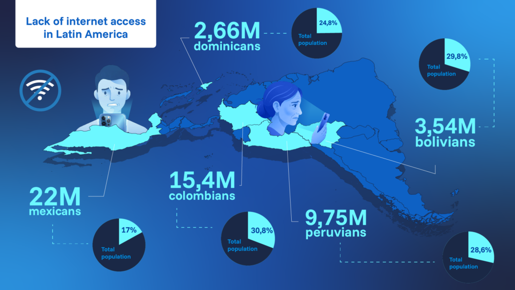 However, the integration of Identy.io’s revolutionary mobile-first technology not only brings efficiency and cost reduction advantages for governments, but also allows democratizing access to administrative procedures digitally, for those who live in remote areas or regions with limited infrastructure where internet access is not guaranteed. This may be the case in Mexico, for example, where, according to the National Survey on the Availability and Use of Information Technologies in Households (ENDUTIH), only one in three citizens use their Internet connection to interact with the government due to the scarce digitalization in rural or marginalized areas, which affects approximately 17% of the population. A similar situation occurs in other Latin American countries where a digital identity card has been implemented, but part of the population does not have access to it due to the lack of digitalization and internet access, as can be seen in the following table.