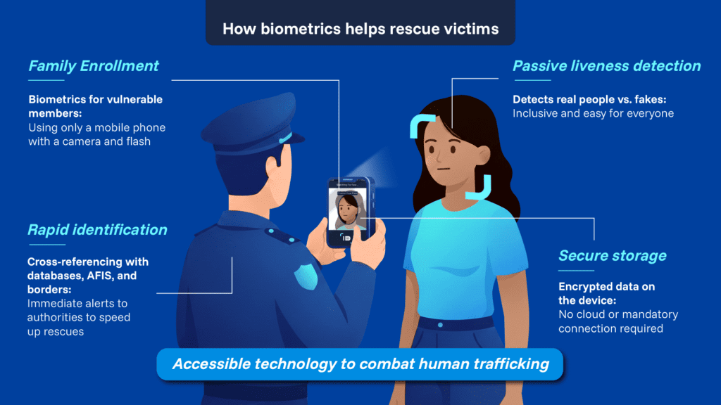 In response to this social crisis, biometric technology is emerging as a global security standard to protect personal freedom in high-risk situations. Identy.io works alongside social organizations such as My Family ID and The Exodus Road, providing proprietary technology with a noble purpose: reducing crime and facilitating the rescue of victims.